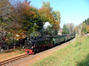 Zu Fuß erreichen Sie innerhalb von 5 Minuten den Bahnhof Vierenstraße in Neudorf. Von da aus steigen Sie zu und fahren mit einer Geschwindigkeit von etwa 25 Km/h innerhalb einer dreiviertel Stunde nach Oberwiesental, die höchstgelegene Stadt Deutschlands. Seit dem 1. Juli 1897 dampft die Fichtelbergbahn zwischen Cranzahl und dem Kurort Oberwiesenthal sommers wie winters täglich auf der rund 17 Kilometer langen Strecke. Steigen Sie ein und kommen Sie mit auf eine einstündige Fahrt voller Nostalgie und Eisenbahnromantik. Von Cranzahl führt die Strecke durch das Sehmatal bis zum Haltepunkt Unterneudorf. Weiter bergauf, vorbei an beschaulichen erzgebirgischen Häusern, dampft die Fichtelbergbahn bis zum Bahnhof Neudorf. Gerade einmal 5 Gehminuten von hier befindet sich Ihr Ferienhaus. Hier, am Haltepunkt Vierenstraße, beginnt das geschlossene Waldgebiet des Fichtelbergmassivs. Dichte Fichtenwälder säumen den Schienenweg und lassen mitreisende Gäste tief durchatmen. Wanderer können von hier aus den Aufstieg zum Fichtelberg (1.215 m) mit einem Höhenunterschied von 500 m wagen. Auch die Dampflok hat nun ihr beschwerlichstes Stück Weg vor sich. Nur mit Volldampf schafft sie den steilen Aufstieg nach Kretscham-Rothensehma. Die Station ist ebenfalls ein beliebter Ausgangspunkt für ausgedehnte Wanderungen in frischer Waldluft. Nach dem Bahnhof Niederschlag trifft die Fichtelbergbahn auf die Bundesstraße 95. Entlang des Pöhlbaches, der Grenze zur Tschechischen Republik, dampft sie über Hammer unterwiesenthal und Unterwiesenthal zum Endbahnhof, Kurort Oberwiesenthal. Wenn die „betagte Dame“ kurz vor dem Oberwiesenthaler Bahnhof über das mächtige, 110 m lange und 23 m hohe Hüttenbachviadukt schnauft, wird Eisenbahnfahren zu einem Erlebnis, das man normalerweise nur aus Büchern kennt.